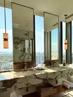 🌆 Introducing 'The Ritz-Carlton Fukuoka' as a recommended hotel for enjoying a panoramic view of Fukuoka city! You can relax in the bathroom with floor-to-ceiling windows, enjoy happy hour at the lounge, and admire the sculptures and artworks displayed throughout the hotel. Plus, with Hakata Canal City and Daimyo Garden City just downstairs, it’s the perfect location for a leisurely travel course in Fukuoka!