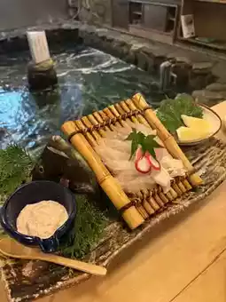 They catch squid swimming in the pond right in front of you and prepare it fresh, ensuring it's super fresh and lively✨. The squid is sweet, has a great texture, and tastes amazing💓. The squid's bone part is turned into tempura! They also have filefish, and when I ordered it, the liver was incredibly delicious and absolutely top-notch🤤. It's a bit pricey, but the atmosphere is great, and the taste is superb!