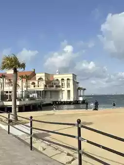 It is an artificial beach. The weather is very good. We went in March. The wind was very strong. It is suitable for relaxing, walking, and enjoying the view. You can also do water activities.