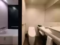 The room comes equipped with three types of Nespresso capsules and two bottles of water. The bedding is excellent, and the bathroom is well-designed, featuring a separate bathtub and shower room. The toilet and sink area are also spacious.