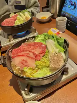 The sukiyaki is warm and rich, with meat that melts in your mouth. The crepes are a dessert paradise 🍓, and the takoyaki is perfectly crispy on the outside and soft on the inside—pure Japanese street food vibes.
