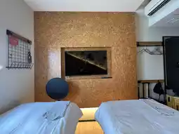 • Offers various room types including Studio, Twin, and shared rooms, catering to different travelers.