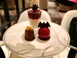 The Halloween theme is adorably evident in the menu. The set includes three savory items, six sweets, and two types of scones, along with unlimited drinks. The sweets here are in excellent condition.
