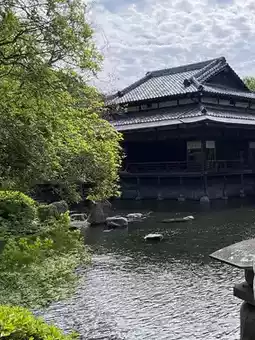 With a tea house available, you can savor matcha while gazing at the large pond 🍵.
