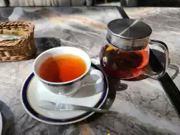 I was guided to a window-side seat overlooking the pool, which had a jacuzzi at the far end. The ambiance felt like being at a resort hotel in Okinawa. The afternoon tea includes one drink, either coffee or tea. I chose black tea, with additional hot water available upon request.
