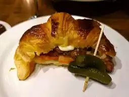 The food offerings are quite substantial, enough to serve as a meal. The menu includes a croissant sandwich with a patty reminiscent of Korean-style "neobiani," along with five savory items, making a total of six dishes. Smoked salmon and beef stew are also included, pairing wonderfully with the cocktail. The sweets selection features nine items, all in finger-food sizes, perfect for enjoying with tea as dessert.