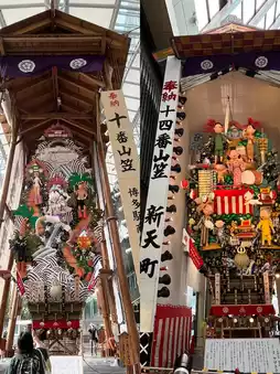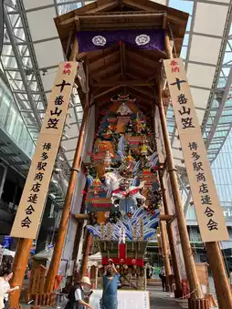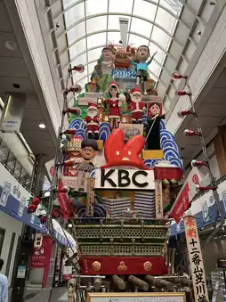 The decorated Yamakasa is not a Yamakasa that is carried and run, but is a Yamakasa that is displayed without moving, and about 10 decorated Yamakasa are set up in Hakata's shopping streets, in front of the station, etc.