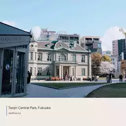 We spread out on a shady lawn near the Meiji-era European buildings and took photos alongside the beautiful red bridge, reminiscent of a magazine cover. We also bought some snacks like sushi and strawberries to enjoy in the park. It's just a three-minute walk from Tenjin Station, a pleasant walk away. It's the perfect place to relax, draw, or chat with friends under the cherry blossoms on a sunny day. There's nothing better than a visit to Fukuoka right now!