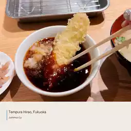 If you are visiting Fukuoka and looking for an authentic tempura experience, we recommend visiting Tempura Hirao Tenjin branch. This restaurant is famous for its freshly fried tempura, served hot one piece at a time right in front of the counter, giving you a crispy outside and soft inside with every bite. The popular set menu starts at around 1,000 yen and includes shrimp, white fish, squid, and seasonal vegetables, served with Japanese rice, miso soup, and the signature “Yuzu Pickled Squid”, a sour and salty dish that helps cut through the richness. The highlight is the freshness of the ingredients and the thin fried batter. The restaurant is simply decorated but charmingly, with a counter style around the frying pan. You can see the chef frying the tempura fresh. The queue is quite long but moves quickly. It is convenient because it is in the ACROS Fukuoka building near Tenjin Central Park. Lunch or dinner is delicious and satisfying at a great price, just like the fame of Tempura Hirao in Fukuoka.