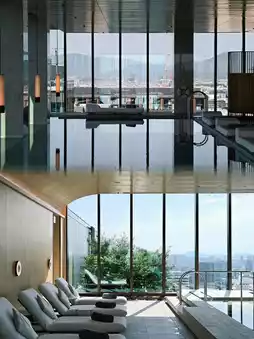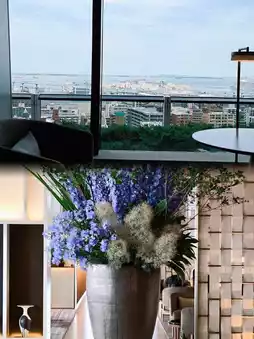 The hotel is filled with art—screens, woven pieces, and floral arrangements adorn every space without feeling cluttered. Layan’s design truly shines. On the same floor as the lobby, there’s a dining area: Genjyu features massive mineral decorations at its entrance, the Elephant Bar offers sunset views, Viridis appears to be an all-day dining spot (I didn’t try it, so I’m not sure), and Bay Grill doubles as an open-air bar for casual drinks. The pool, located on the top floor, used to be overcrowded due to influencer visits, but it’s now pay-to-use (around ¥100+; complimentary for Titanium Elite members and above). I checked it out—it’s stunning, with open views and basic spa facilities like a sauna available for free.