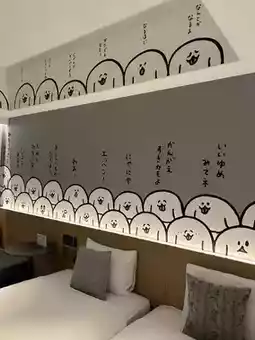 This hotel boasts some seriously adorable rooms and is highly recommended for a stay in Fukuoka. These two rooms, filled with Perochi characters, are located on the top floor. First of all, you'll be amazed by how cute they are from the door. Once inside, you'll be amazed by the characters painted everywhere (even on the ceiling), which is super exciting. The front desk also rented out cute stuffed toys. We also received character headbands and pouches as gifts. The breakfast buffet is centered around Japanese cuisine, and everything is delicious. You can even make your own udon noodles.