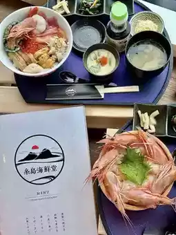 Nestled along the scenic coastline of Fukuoka, Itoshima is a hidden gem where the sea gifts its freshest treasures every day. Dining here means indulging in seafood bowls overflowing with plump sashimi, creamy uni, and sweet shrimp, all caught locally and served with the essence of the ocean. The atmosphere is relaxed yet vibrant—waves in the distance, fishermen at work, and the unmistakable taste of freshness in every bite. It’s not just a meal, but a celebration of Itoshima’s coastal charm.