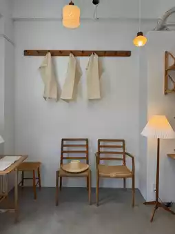 The store features warm wooden furniture and cute accessories, creating a cozy atmosphere.