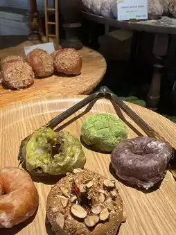 "Nama Donuts" (raw doughnuts) are soft, fluffy, and light, like eating bakery goods with a crispy exterior and soft interior.