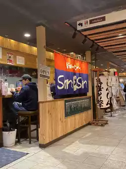 The seating can be tight, and the atmosphere is quite noisy — typical of a popular ramen restaurant with a lot of people coming and going.