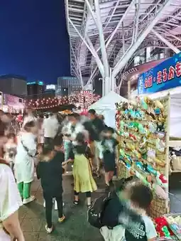 There are various stalls 🏪 around the festival, including fried noodles, octopus rolls, shaved ice 🍜, and traditional games such as children's favorite skate fishing 🎣 and super ball 🔴.
