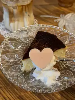 Recommended! Heart-shaped chocolate Basque cheesecake: ¥800. Delicious and not too sweet!