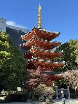 Upon entering the temple grounds, the first thing that struck us was the ancient and majestic architecture. The main hall (Daixue Hall), with its solemn roof and wide corridors, appears remarkably tranquil against the backdrop of modern skyscrapers. Within the temple grounds, a vibrant vermilion five-story pagoda stands out against the blue sky, creating a beautiful backdrop against the lush greenery. A closer look reveals Rokkakudo Hall, a Fukuoka City Cultural Heritage, housing a revolving Buddhist shrine and imbued with a sense of history. We were drawn to a sign reading "Fukuoka Great Buddha," which announced its opening hours: 9:00 AM to 4:45 PM. This Great Buddha Hall was the highlight of our trip.