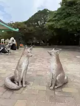 As I continued to explore, I discovered many intricate details. In a small square, two fox sculptures sat facing each other as if engaged in a whispered conversation, drawing the attention of passersby. Nearby, a green corridor formed by a trellis of intertwined vines provided a natural canopy, offering a cool respite from the heat. Walking through it felt like entering a secret garden.