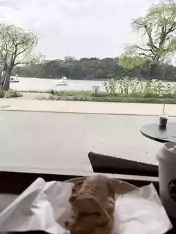 Of course, I couldn't miss the Starbucks by the lake. Sitting by the window with a cup of coffee and a light snack, I watched the interplay of light and shadow on the water and the passersby. Outside, a father was pushing a stroller under the shade of the trees, creating a heartwarming scene.