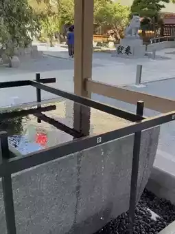 The journey begins in the bustling heart of Tenjin, and ends at the tranquil Kego Shrine. This shrine, nestled in the urban area, possesses a tranquil charm. Within the shrine, you'll find Japanese-inspired features, such as the modern-style hand-washing pavilion (pictured). Its simple stone and metal lines give the ancient hand-washing ritual a contemporary aesthetic.