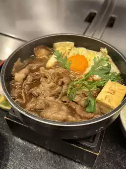 7️⃣ Sukiyaki Hot Pot: Thick slices of beef simmered in a sweet and savory broth, served with tofu, vegetables, and raw egg. Aromatic and velvety in taste. @Kikuya