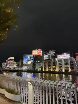 First, in Fukuoka City: • Nakasu River Night View 🌃: The beautiful lights lining the river make this a must-see spot for nighttime photos.
