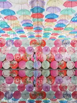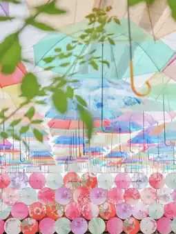 A photogenic spot available for a limited time only! "Umbrella Sky" at Inawashiro Herb Garden