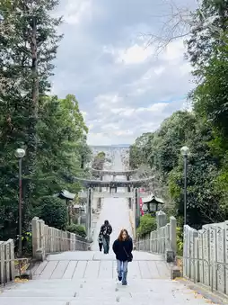Today, my partner and I visited Miyajidake Shrine 🌿🛤️. I have to say, the climb up the stairs was a little tiring, but once we reached the top, it was worth it! 😍 The panoramic ocean view was breathtaking, and the sunlight shone just right, making it feel like we were transported to another world. 🌊✨ Every step we took was worth it. Every moment together made the trip even sweeter. 💑