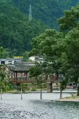 🔶 Riverside edge: With the covered bridge, river water, ancient town buildings, and distant green mountains as the background, the scene is rich.