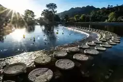 3. Stream Shallows: Find a shallow area with pebbles. Wear a light-colored dress (white, light blue are perfect matches). Stand in the water and take reflection photos. Hold your phone lens close to the water surface to capture a dreamy "person swimming in the water" effect. Remember to wear non-slip shoes~