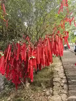 On both sides of the stone steps, there are colorful prayer flags. Some pray for success in exams and promotion, some wish for a happy marriage, and some pray for safety…