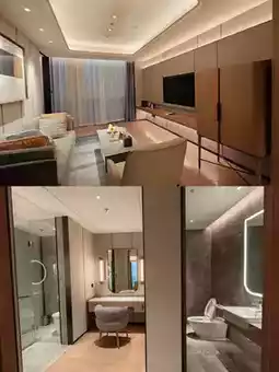 The rooms are equipped with a 55-inch HD TV and a separate bathtub. The bedding is skin-friendly and soft, so you won't want to get up once you lie down on it. The hotel also has large banquet halls and meeting rooms suitable for business events and wedding banquets. The parent-child facilities are also very complete, such as a swimming pool, which is very suitable for family tourists. In addition, the executive lounge provides exclusive services and customized experiences, which fully demonstrates your dignity.