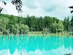 In the afternoon, we drove to the Blue Pond, one of the most representative attractions in Biei. When we walked to the edge of the pond, the sight before us was breathtaking - the water was a mysterious blue. The reason why the Blue Pond has such a dreamy color is that the water contains minerals, which refract sunlight to form a unique blue tone. This blue, words and photos can't compare to the feeling and surprise of seeing it with your own eyes👍! Finally, we ate cantaloupe ice cream (too sweet and a bit greasy) and corn 🌽 nearby. The corn in Hokkaido is so delicious. I still miss it when I return to Taiwan!