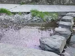 The pink flowers are so dazzling, and the petals have fallen into the stream. 🌸It is so beautiful to see them swaying in the wind on the water. It is a different atmosphere to appreciate them at dusk.