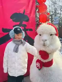 As soon as we entered the park, we saw a festive New Year atmosphere. The alpaca wears a red cotton jacket and looks like something out of a New Year picture. It’s so cute. Don’t miss the parade at the door. The polar bear, the God of Wealth, and the alpaca formed a team, interacting with tourists along the way, and the children chased them all the way.
