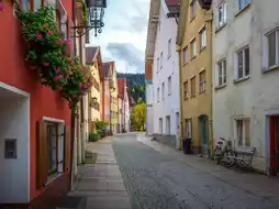 The Old Town (Altstadt) is vibrant. The ancient cobblestone streets, pastel-colored wooden houses, and Baroque buildings create a nostalgic atmosphere. There are ancient churches, such as St. Mang's Abbey and the Hohes Schloss (High Castle), with its trompe-l'œil murals.
