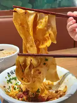 The handmade noodles are slender and chewy, the portion is plentiful, the egg flakes are tender, and the soup is sweet and sour and very appetizing.