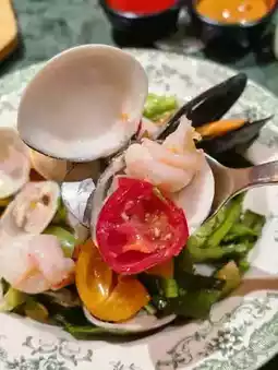 🦐 Tasmanian Prawn Salad: Prawns and white mussels are fresh and tender, the sauce is seasoned with tree tomatoes and lime, sour and sweet with some coconut sugar flavor, coriander also enhances the whole freshness, eat like tongue surf ~