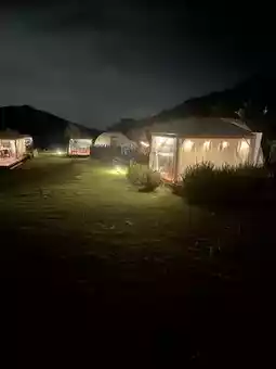 The tent is not only big and new, but also has air conditioning, heater, and power plug. The bathrooms are well equipped and have a high level of privacy, not at all as shabby as traditional camping. There is a "private BBQ area" outdoors. At night, there are staff to help you prepare ingredients. You don't wash your hands to make soup. Even the dishes are collected. After eating, you can go to the ranch immediately.