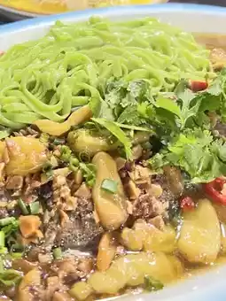 Fish Head with Jade Noodles: A freshly prepared classic. The savory sauce over chewy noodles brings ultimate satisfaction—best enjoyed piping hot!