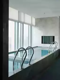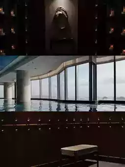 The fitness center on the 41st floor is mainly designed in dark tones, and when the elevator door opens, you will see a wall of solid wood, which instantly fills the room with a warm texture. The candlelight is quiet and elegant. The infinity pool is set by the river, like a picture of the sky and water, and the hot pool in the changing room is next to the floor-to-ceiling windows, with a view of the river and the sky, and the body and mind are completely relaxed.