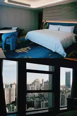 Fuzhou ME Hotel is a trendy luxury five-star hotel located at 117 Gutian Road, Gulou District (near Guanglu Lane). Blending local Fuzhou elements like goldfish and banyan roots into its design, it features the city's only helipad. The hotel offers 212 rooms across floors 11-25, starting from 45 sqm, with some suites boasting private natural hot spring baths. Equipped with RISUN smart room control systems, it provides Jo Malone London toiletries and complimentary minibars. The "Twilight Rendezvous" performance at 6 PM daily enhances the artistic ambiance. Facilities include multifunctional meeting halls (up to 700㎡), with room rates starting around ¥650/night and premium suites reaching ¥20,000/night.