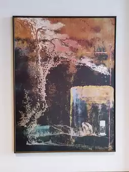 Red, blue, brown, pink, white... vibrant colors leap off the canvas, harmonious and beautiful! One of the artworks even uses tea brewed from Fujian rock tea as pigment—you could call it a new art form, or see it as the artist's way of expressing life's infinite possibilities and beautiful aspirations through their craft.
