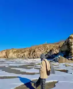 I've seen the sea countless times 😜, but this is my first time seeing a frozen sea in winter 🌊. Here, you can enjoy the boundless beauty of snow ❄️ and the romantic charm of the sea 💖. As you walk along the frozen seaside 👣, stepping on the soft snow, the snow glistens in the sunlight ✨. Wow, this feeling is so healing and beautiful 🩵.