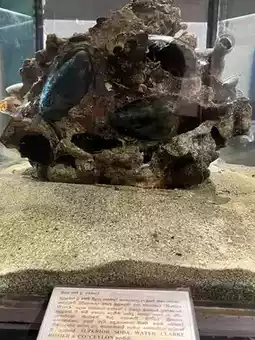 There are fish, coral specimens and underwater ecological simulation models, like a small marine classroom