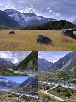- Mid-range warriors💪: Hooker Valley Track, a 10 km journey, a 3-hour immersion. Glaciers, forests, panoramic views of Mount Cook, and after three swing bridges, Hooker Lake awaits you. Don't miss this stunning beauty!