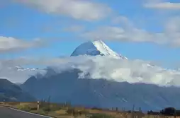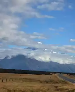 Starting from Lake Tekapo, I drove along State Highway 80, with Lake Pukaki as my companion, and suddenly, New Zealand's highest peak, Mount Cook, appeared before my eyes! Shrouded in clouds and mist, it resembled a mysterious beauty with a veiled face, hazy and enchanting.