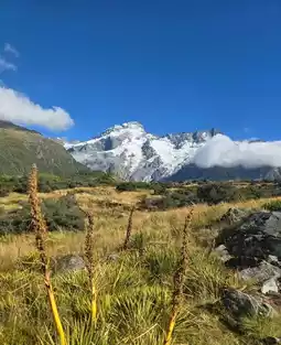 Day 4: We went to Mount Cook! I'm so glad we went! It was a full-day tour, and we took in all sorts of sights, including Lake Pukaki, Mount Cook, and a salmon shop. 🏔️