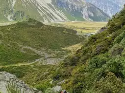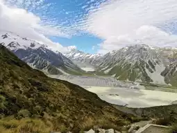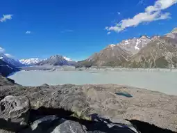 เรานั่งพักกินแซนวิชอยู่ตรง Sealy Tarns อยู่พักใหญ่ๆ ด้วยความที่อากาศเย็นลงมากๆ ประกอบกับลมแรงจนสะท้าน ชุดที่ใส่หลายชั้นกันความเย็นไม่ไหว เราเลยตัดสินใจ❌"ไม่ไปต่อ"❌ แล้วเดินทางมาข้างล่างเพื่อขับรถไปเที่ยวต่อยัง "Tasman Glacier View"